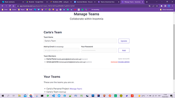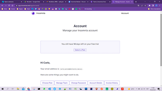 Insomnia presenta una versión de prueba por 14 días permitiendo la colaboración en equipos de hasta 5 integrantes.